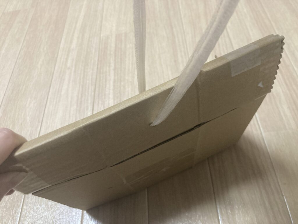 段ボールの硬さのせいで紐が緩んだり、うまく固定できなかったりする。