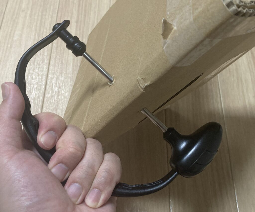 段ボールに突き刺して貫通させる使い方。